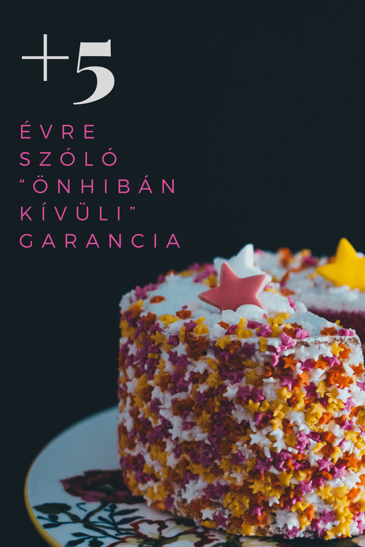 5 évre szóló alapgarancia + 5 évre szóló “önhibán kívüli” garancia.